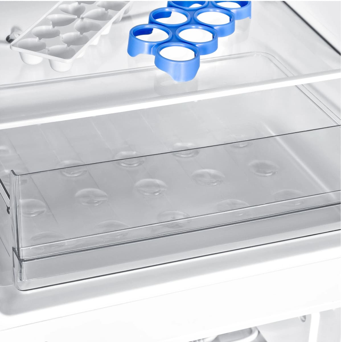 Ящики для продуктов изготавливаются либо целиком из прозрачного пластика, либо часто имеют переднюю прозрачную панель, которая обеспечивает лучший обзор. Полки в большинстве холодильников могут перемещаться по высоте, устанавливаются на специальных направляющих и без труда снимаются для очистки.