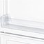 Полки в отделении бывают нескольких типов. Чаще всего встречаются полки из закаленного или ударопрочного стекла. Закаленное стекло выдерживает особенно большие нагрузки до 25 кг, так что на них можно устанавливать посуду из любого материала. Стекло является безопасным нейтральным материалом, не желтеет и не портится со временем, а также быстро и легко моется. Для того чтобы предотвратить проливание жидкости, полки оснащаются металлической или пластиковой окантовкой.