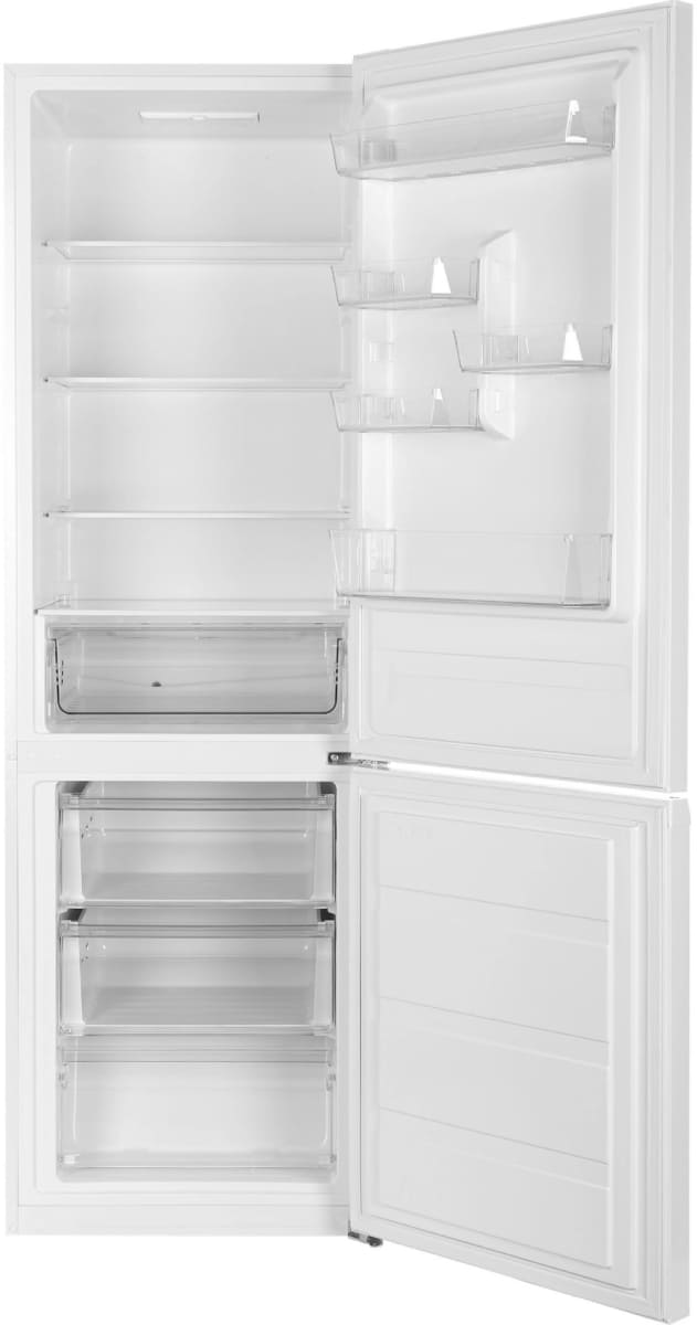 Стандартная ширина наиболее распространенных моделей двухкамерных холодильников с морозильной камерой снизу составляет порядка 60 см, что соответствует ширине обычной кухонной тумбы. Подобный холодильник будет смотреться уместно и не громоздко в любой кухне. Ширину 57-60 см имеют как двухдверные холодильники средней высоты, так и высокие модели. Все большую популярность приобретают узкие модели шириной 50 см, вместимость которых увеличивается за счет большой высоты от 180 см.