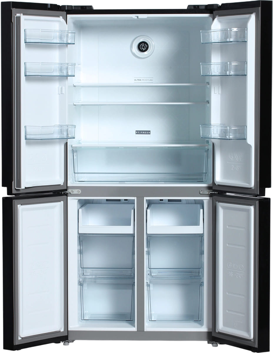 Четырех-, пяти- и шестикамерные модели включают, кроме морозильной и холодильной камер, отдельную зону свежести (иногда состоящую из сухого и влажного отсеков) и специальный отсек для ледогенератора, а в некоторых случаях еще и винное отделение.