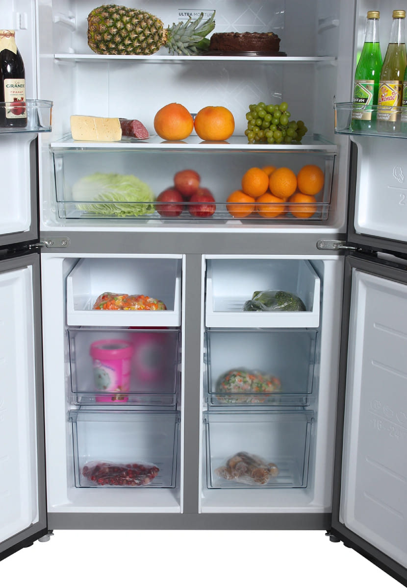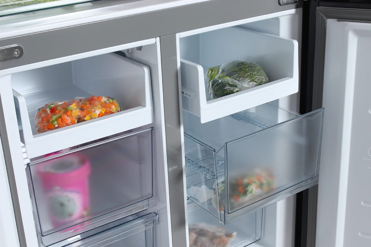 Трехкамерные модели выпускаются в нескольких вариантах. В некоторых случаях в качестве третьей камеры поступает так называемая зона свежести — отделение, где поддерживается температура около 0 градусов. В другом варианте подобные модели имеют морозильную камеру, состоящую из двух выдвижных ящиков.
