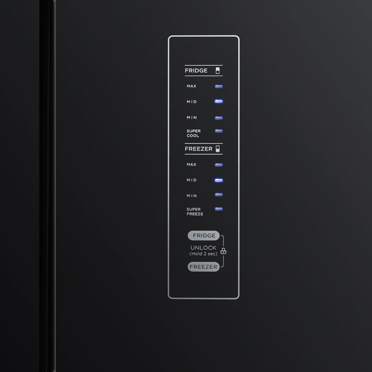 Гораздо точнее сориентироваться по индикаторам можно в холодильниках с электронной системой управления. Эти устройства обычно оснащены дисплеем, на котором высвечиваются значения фактической температуры в холодильной и морозильной камерах. Рядом с ними располагаются кнопки, во многих случаях сенсорные, при помощи которых можно регулировать температуру в каждой камере отдельно, и индикаторы включения этих камер. Здесь же, на панели инструментов, находятся индикаторы, указывающие на активацию дополнительных опций — например, режимов быстрого замораживания и быстрого охлаждения, отпускного режима, блокировки панели управления от детей.