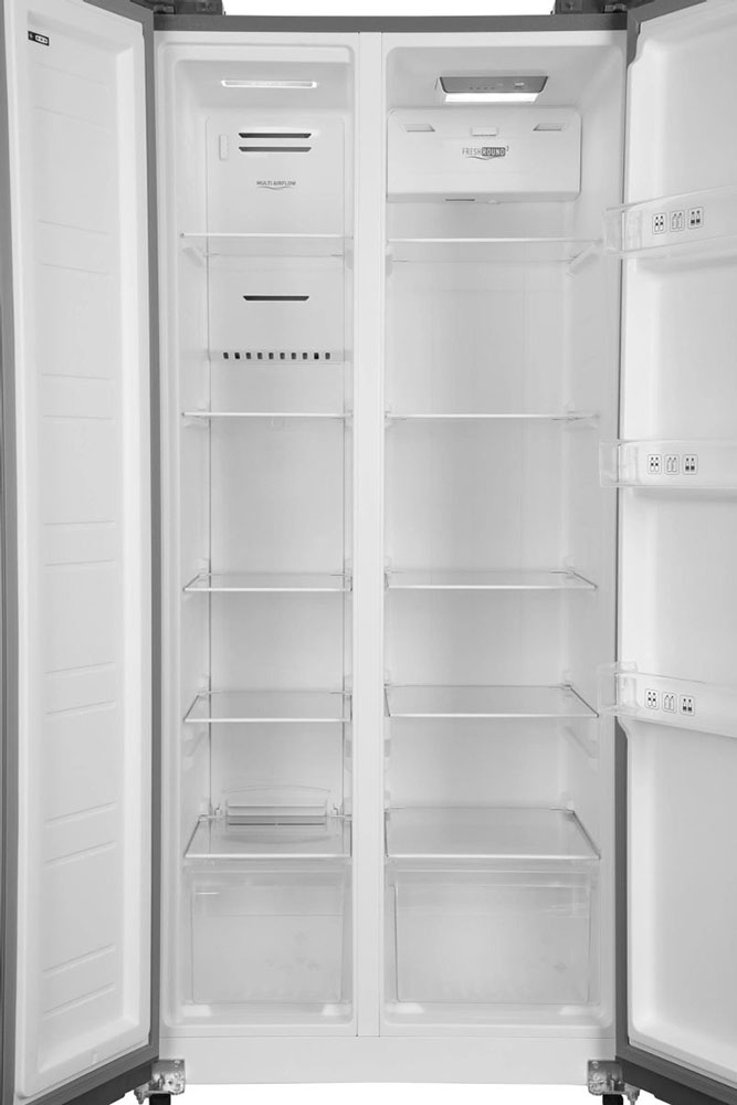 Данная модель — отдельностоящая, поэтому нужно тщательно подобрать место для ее размещения. Холодильник Side-by-Side с необычным расположением камер — сбоку друг от друга — позволяет увеличить объем продуктов для хранения. Такой вариант подходит обладателям просторной кухни, большим семьям, людям, которые запасают продукты и готовят впрок. Количество камер: 2.
