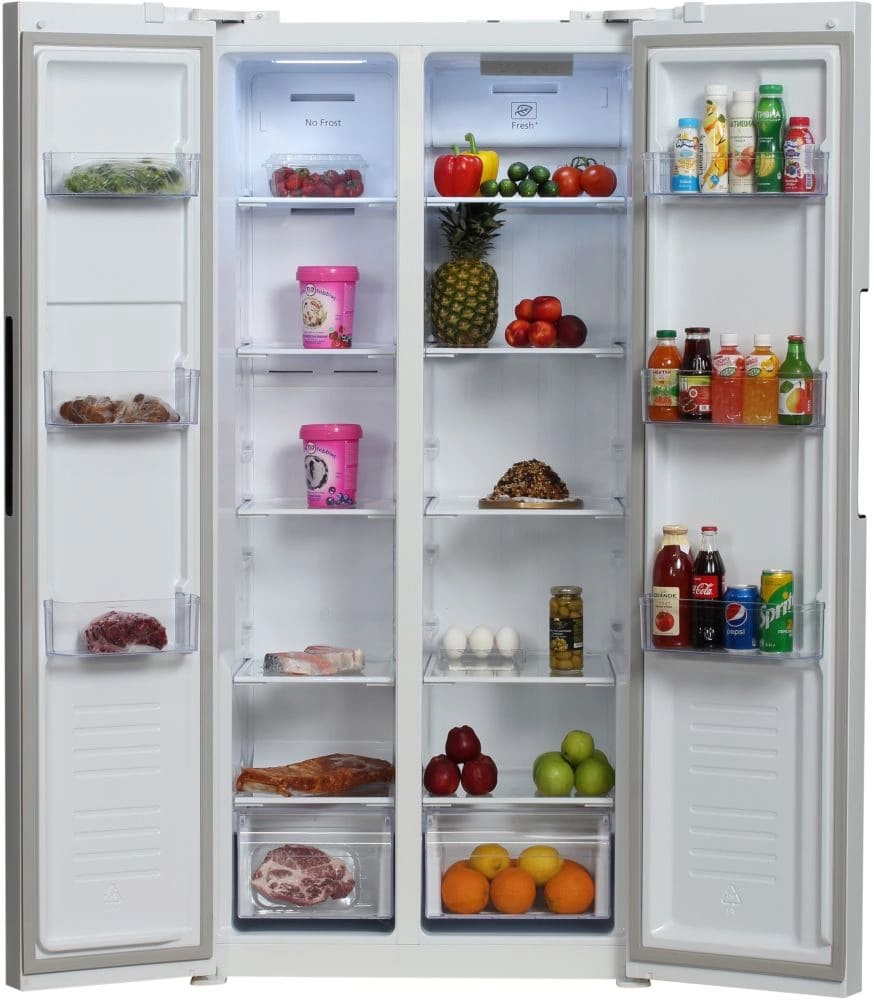 Холодильники Side-by-Side, что в переводе означает «бок-о-бок», — вместительные устройства, в которых холодильная и морозильная камеры располагаются рядом друг с другом. Они предназначаются для хранения значительного запаса продуктов и иногда называются холодильниками с американским типом компоновки, поскольку такие приборы с распашными дверями появились именно в США.