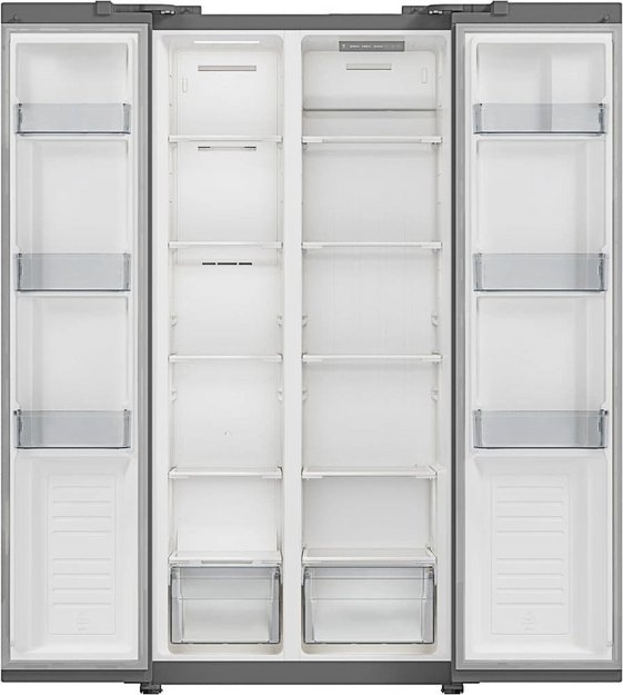 Данная модель — отдельностоящая, поэтому нужно тщательно подобрать место для ее размещения. Холодильник Side-by-Side с необычным расположением камер — сбоку друг от друга — позволяет увеличить объем продуктов для хранения. Такой вариант подходит обладателям просторной кухни, большим семьям, людям, которые запасают продукты и готовят впрок. Количество камер: 2.