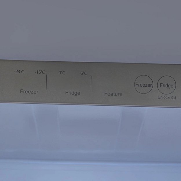 Гораздо точнее сориентироваться по индикаторам можно в холодильниках с электронной системой управления. Эти устройства обычно оснащены дисплеем, на котором высвечиваются значения фактической температуры в холодильной и морозильной камерах. Рядом с ними располагаются кнопки, во многих случаях сенсорные, при помощи которых можно регулировать температуру в каждой камере отдельно, и индикаторы включения этих камер. Здесь же, на панели инструментов, находятся индикаторы, указывающие на активацию дополнительных опций — например, режимов быстрого замораживания и быстрого охлаждения, отпускного режима, блокировки панели управления от детей.