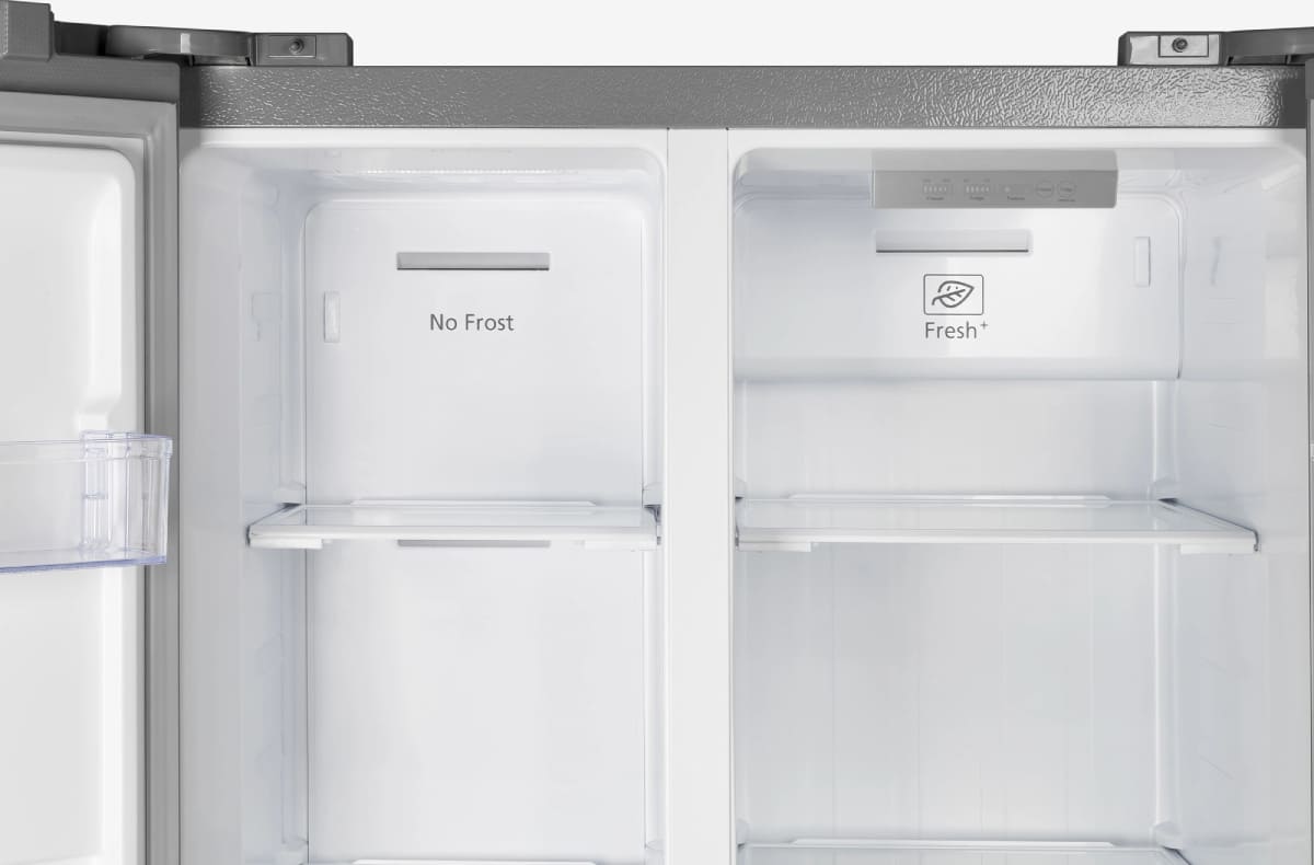 Данная модель — отдельностоящая, поэтому нужно тщательно подобрать место для ее размещения. Холодильник Side-by-Side с необычным расположением камер — сбоку друг от друга — позволяет увеличить объем продуктов для хранения. Такой вариант подходит обладателям просторной кухни, большим семьям, людям, которые запасают продукты и готовят впрок. Количество камер: 2.