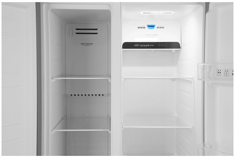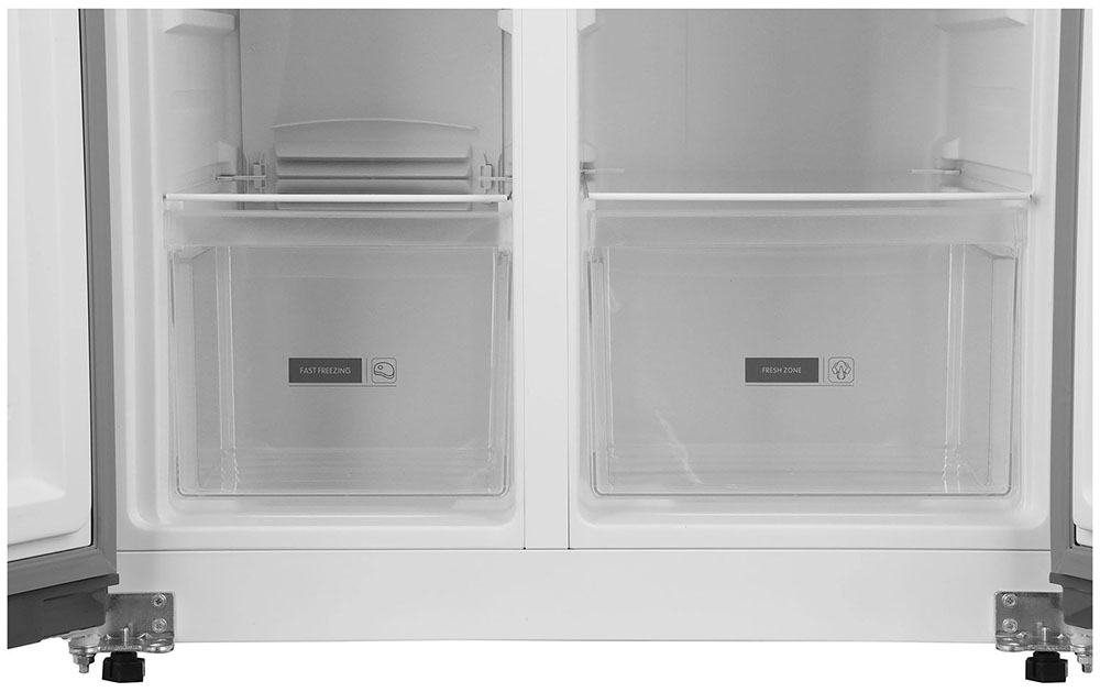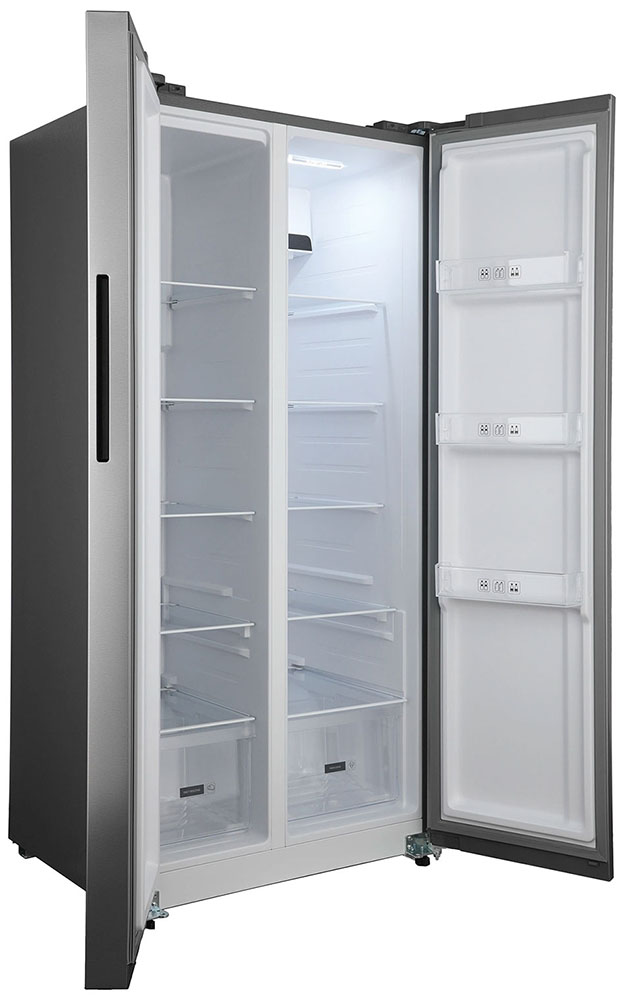 Данная модель — отдельностоящая, поэтому нужно тщательно подобрать место для ее размещения. Холодильник Side-by-Side с необычным расположением камер — сбоку друг от друга — позволяет увеличить объем продуктов для хранения. Такой вариант подходит обладателям просторной кухни, большим семьям, людям, которые запасают продукты и готовят впрок. Количество камер: 2.