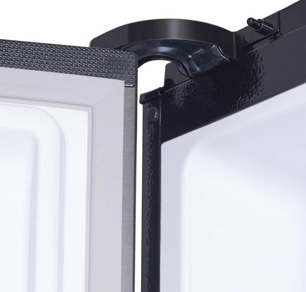 Данная модель — отдельностоящая, поэтому нужно тщательно подобрать место для ее размещения. Холодильник Side-by-Side с необычным расположением камер — сбоку друг от друга — позволяет увеличить объем продуктов для хранения. Такой вариант подходит обладателям просторной кухни, большим семьям, людям, которые запасают продукты и готовят впрок. Количество камер: 2.