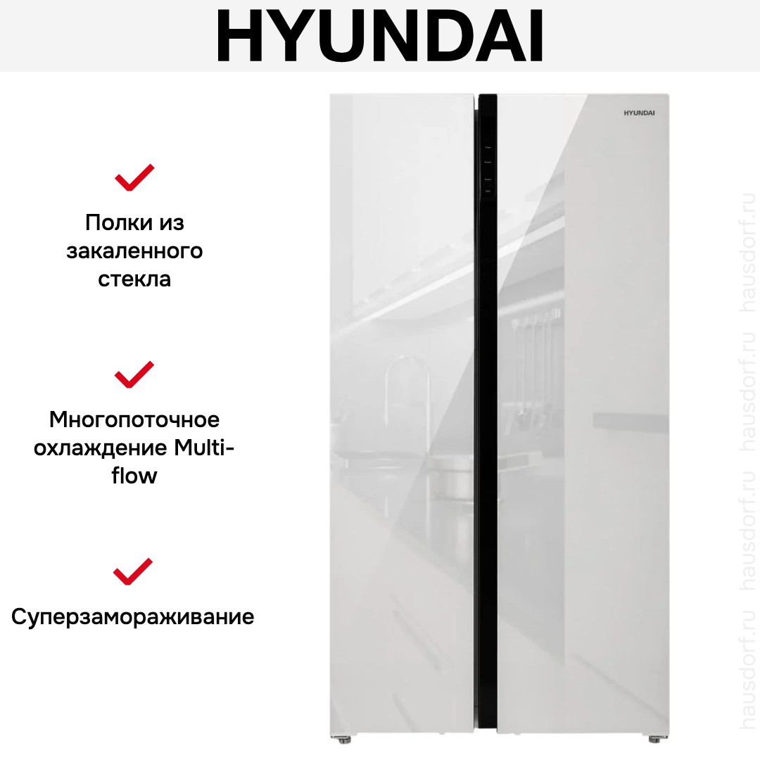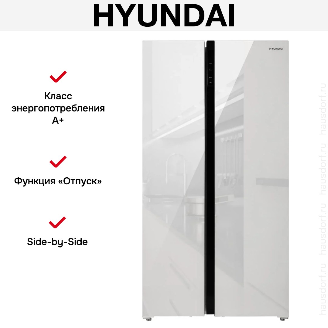 Холодильник Hyundai CS6503FV белое стекло — замечательный выбор для всех, кто нуждается в надежном и современном приборе, чтобы обустроить кухню по последнему слову техники.