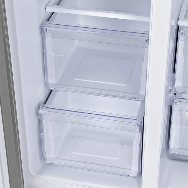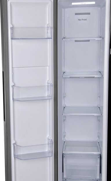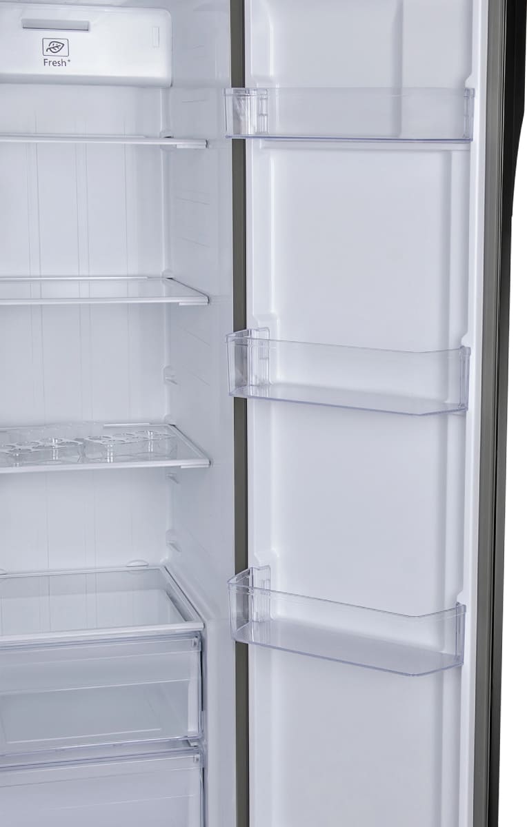 Данная модель — отдельностоящая, поэтому нужно тщательно подобрать место для ее размещения. Холодильник Side-by-Side с необычным расположением камер — сбоку друг от друга — позволяет увеличить объем продуктов для хранения. Такой вариант подходит обладателям просторной кухни, большим семьям, людям, которые запасают продукты и готовят впрок. Количество камер: 2.