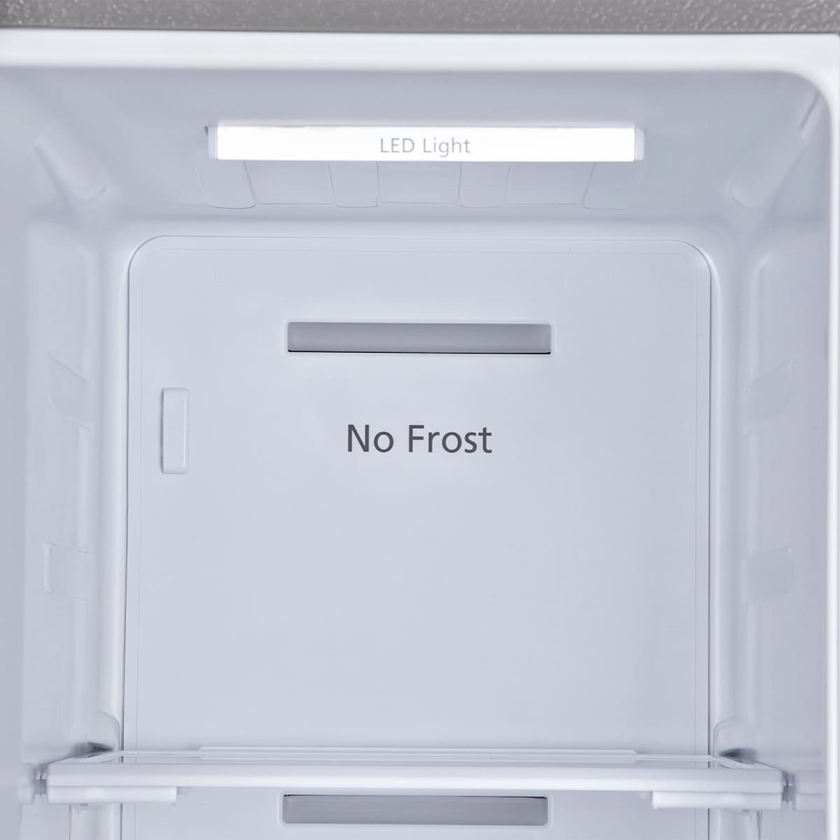 Образование льда предотвращает специальный вентилятор, который заставляет холодный воздух циркулировать по всему пространству морозильника. Лед при этом оседает не на стенках, а выводится за пределы камеры и остается на испарителе холодильника. Вентилятор работает попеременно с нагревателем, благодаря чему иней на испарителе оттаивает, а талая вода стекает в поддон, откуда испаряется естественным способом. Вопреки распространенному мнению, в морозильнике с системой No Frost продукты не заветриваются и не сохнут, а энергопотребление ненамного превышает этот показатель для обычных холодильников.