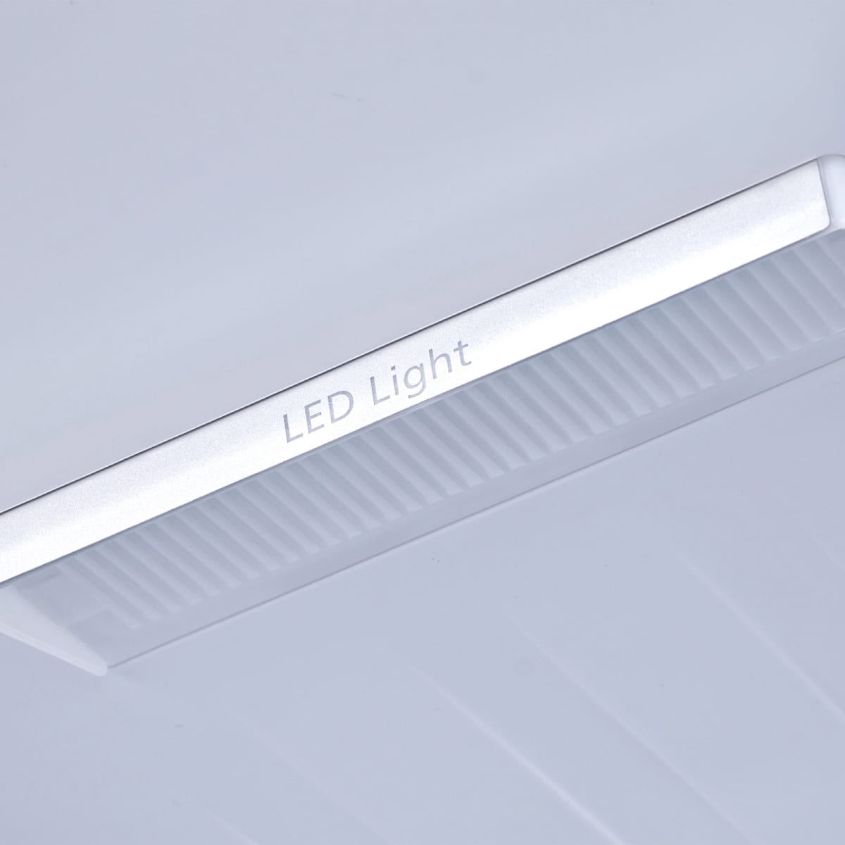 Внутреннее освещение холодильной камеры позволяет обеспечить хороший обзор содержимого и быстро найти необходимые продукты. Чем меньше времени будет открыта дверца холодильника, тем лучше будет поддерживаться в камере выбранная температура, следовательно, улучшится и качество хранения продуктов.