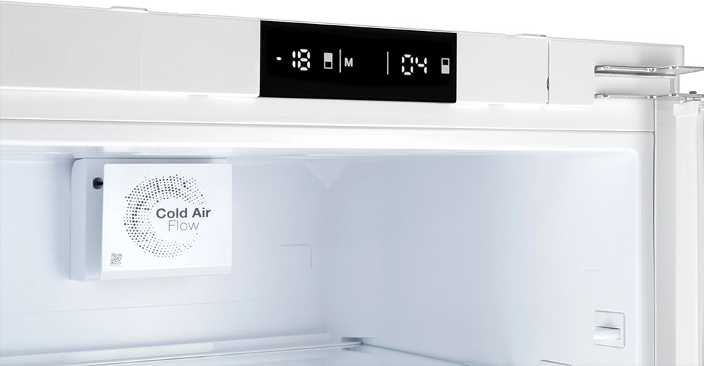 No Frost (Total No Frost, Frost Free): вентилятор обеспечивает циркуляцию охлажденного воздуха, благодаря чему лед не нарастает на стенке, а концентрируется только на скрытом внутри холодильника испарителе. Талая вода собирается в специальной емкости и испаряется. Такой холодильник не нужно размораживать – это экономит время и позволяет не останавливать прибор. Благодаря этим плюсам в современных моделях No Frost – самая распространенная система.