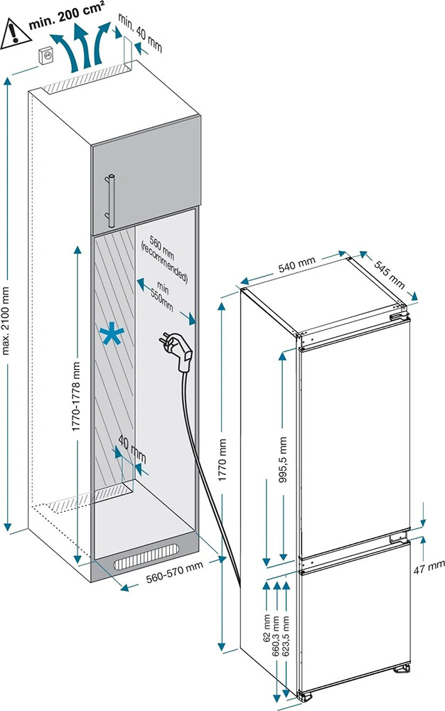 Высота холодильника — один из главных факторов, влияющих на выбор модели. Очевидно, что холодильник большей высоты будет более вместительным. Однако при выборе устройства необходимо учитывать целый ряд факторов, прежде всего высоту потолков, пищевые привычки, состав семьи, рост людей, которые будут холодильником пользоваться. Как правило, встраиваемые устройства представлены в несколько меньшем ассортименте, в том числе и по высоте.