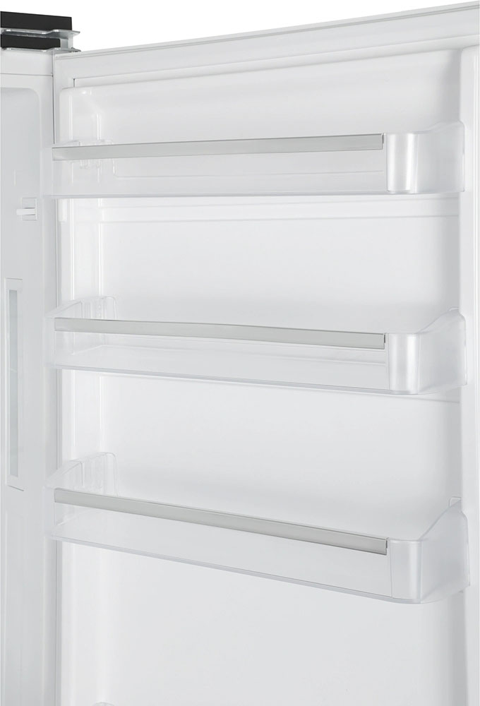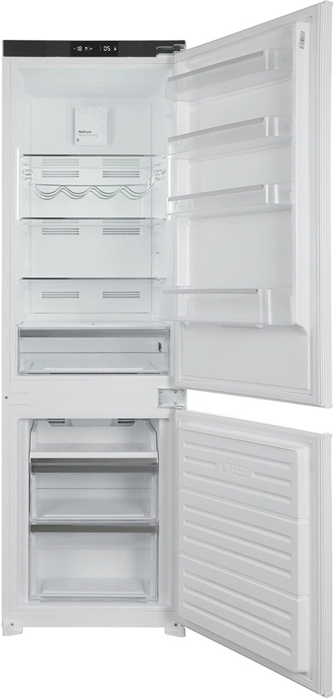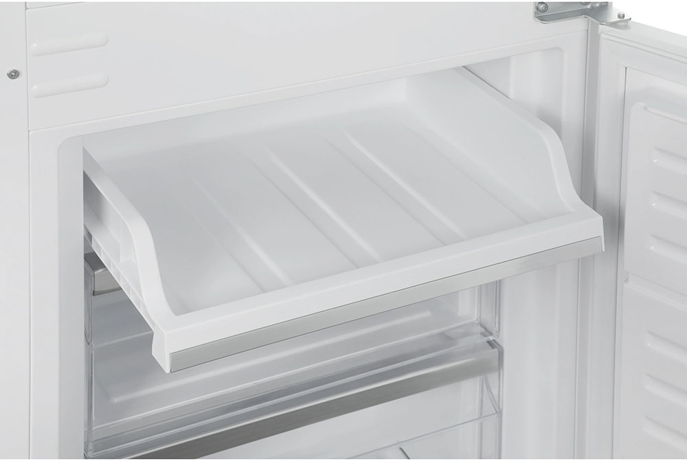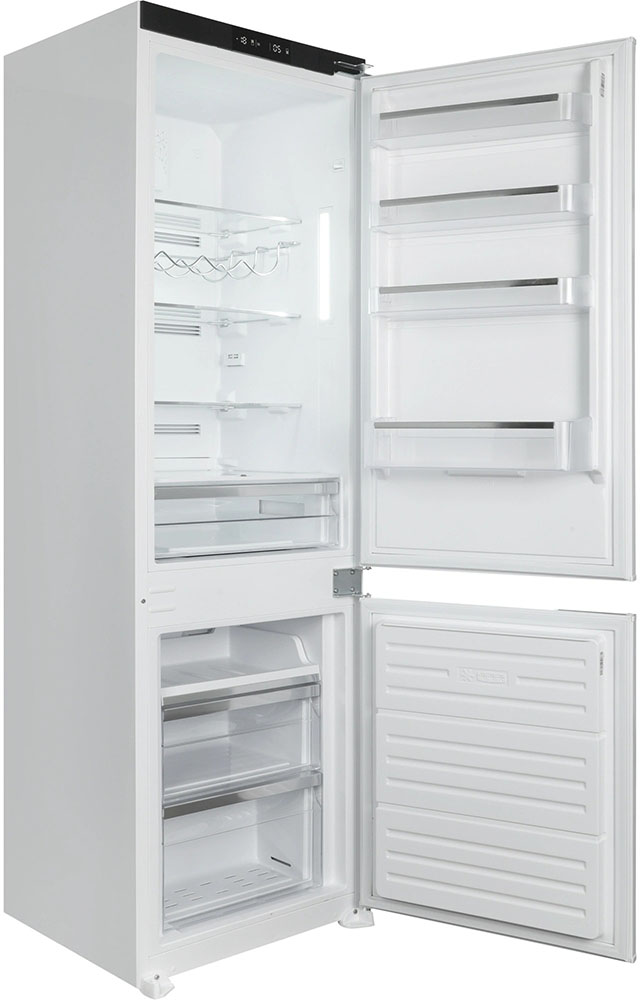 Встраиваемый прибор проще разместить в комнате, даже если общий метраж не такой уж большой. Вы можете спрятать его за декоративной панелью от мебельного фасада — советуем заранее определить нишу и заказывать панели исходя из типа крепления к двери. Холодильник с морозильником обладает всеми опциями, которые чаще всего ищут и выбирают покупатели. Стандартная конфигурация — универсальный вариант для любой квартиры. Количество камер: 2.