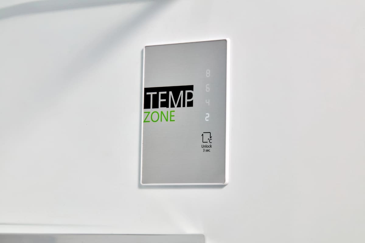 Гораздо точнее сориентироваться по индикаторам можно в холодильниках с электронной системой управления. Эти устройства обычно оснащены дисплеем, на котором высвечиваются значения фактической температуры в холодильной и морозильной камерах. Рядом с ними располагаются кнопки, во многих случаях сенсорные, при помощи которых можно регулировать температуру в каждой камере отдельно, и индикаторы включения этих камер. Здесь же, на панели инструментов, находятся индикаторы, указывающие на активацию дополнительных опций — например, режимов быстрого замораживания и быстрого охлаждения, отпускного режима, блокировки панели управления от детей.