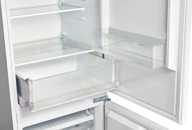 Встраиваемый прибор проще разместить в комнате, даже если общий метраж не такой уж большой. Вы можете спрятать его за декоративной панелью от мебельного фасада — советуем заранее определить нишу и заказывать панели исходя из типа крепления к двери. Вы можете поменять направление открывания двери, так как упор переставляемый и ее можно перевесить на другую сторону. Такая функция открывает больше возможностей для установки. Холодильник с морозильником обладает всеми опциями, которые чаще всего ищут и выбирают покупатели. Стандартная конфигурация — универсальный вариант для любой квартиры. Количество камер: 2.