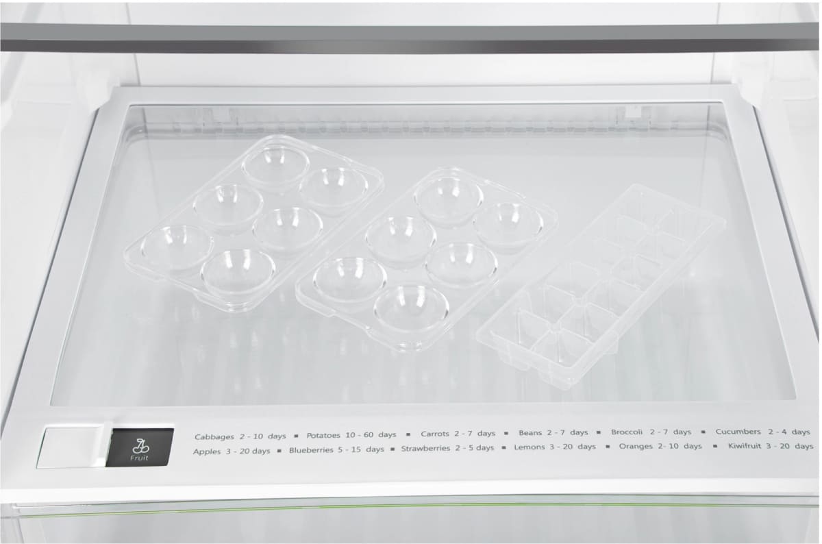 Ящики для продуктов изготавливаются либо целиком из прозрачного пластика, либо часто имеют переднюю прозрачную панель, которая обеспечивает лучший обзор. Полки в большинстве холодильников могут перемещаться по высоте, устанавливаются на специальных направляющих и без труда снимаются для очистки.