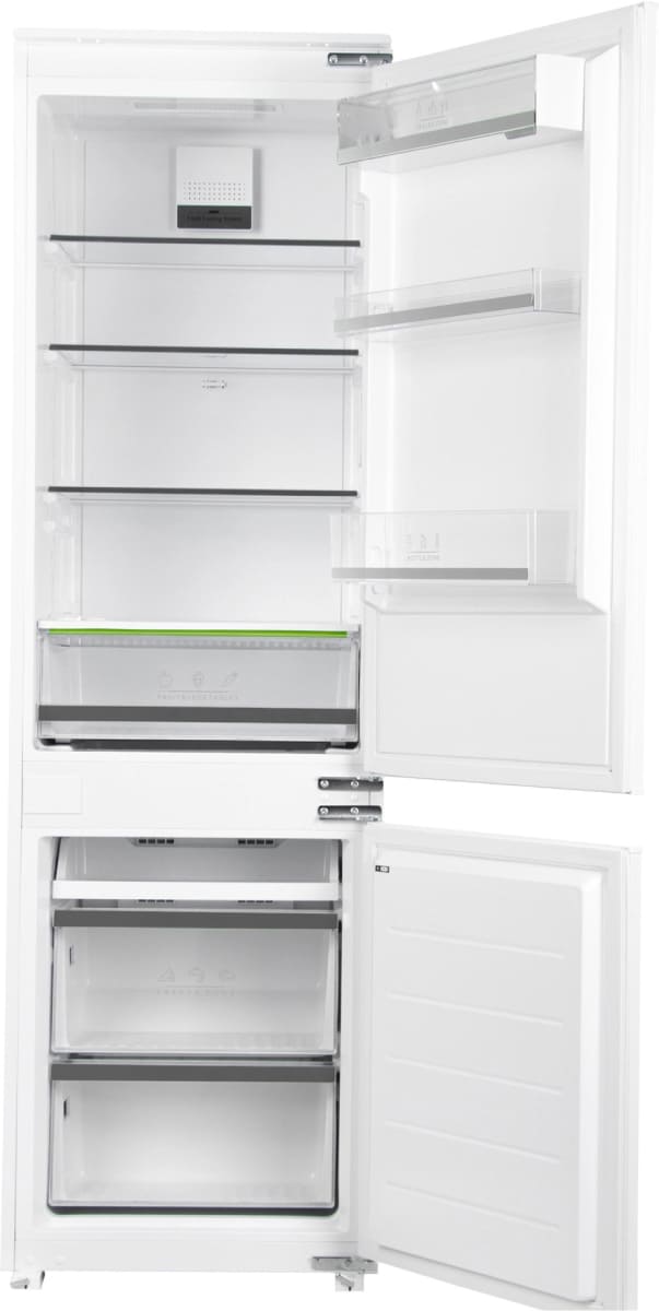 Встраиваемый прибор проще разместить в комнате, даже если общий метраж не такой уж большой. Вы можете спрятать его за декоративной панелью от мебельного фасада — советуем заранее определить нишу и заказывать панели исходя из типа крепления к двери. Вы можете поменять направление открывания двери, так как упор переставляемый и ее можно перевесить на другую сторону. Такая функция открывает больше возможностей для установки. Холодильник с морозильником обладает всеми опциями, которые чаще всего ищут и выбирают покупатели. Стандартная конфигурация — универсальный вариант для любой квартиры. Количество камер: 2.