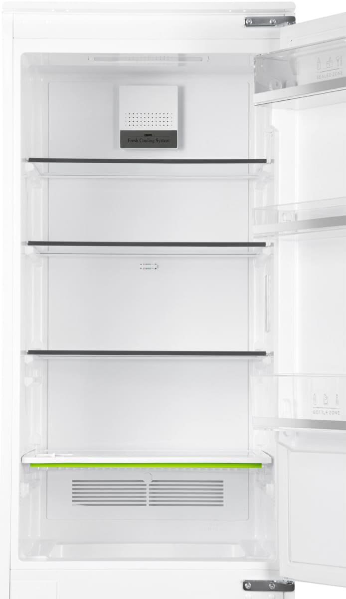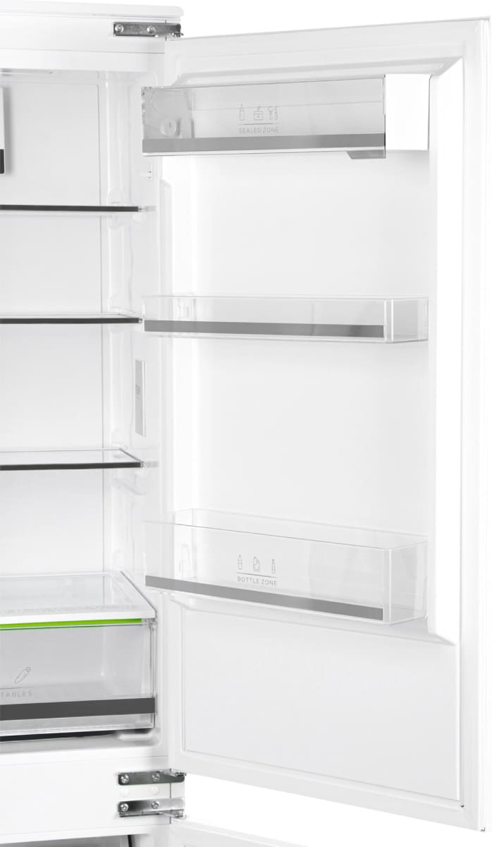 Специальная зона свежести предназначена для правильного и более длительного хранения овощей, фруктов, зелени. В ней поддерживается околонулевая температура, поэтому продукты не перемораживаются и не пересыхают.