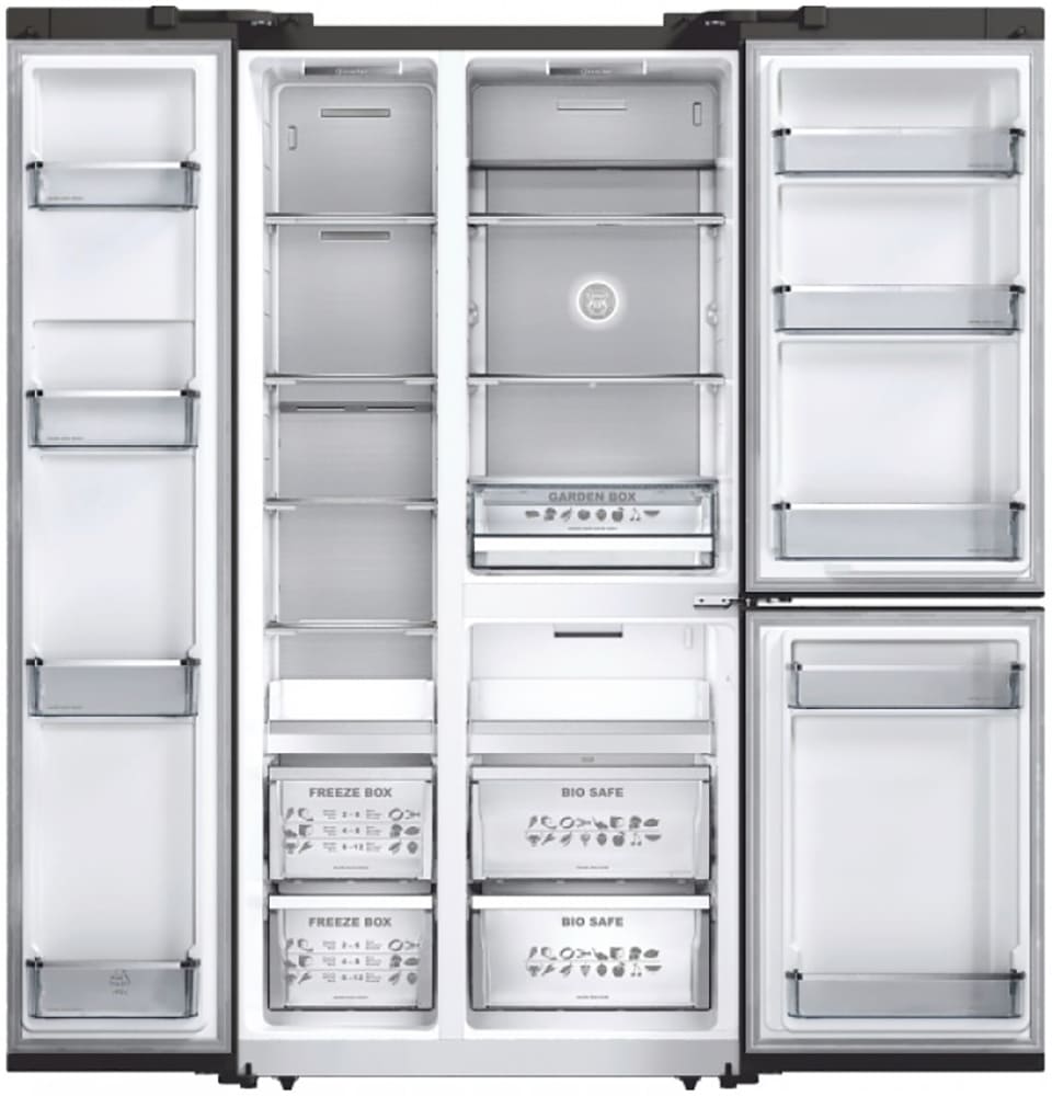 Холодильники Side-by-Side, что в переводе означает «бок-о-бок», — вместительные устройства, в которых холодильная и морозильная камеры располагаются рядом друг с другом. Они предназначаются для хранения значительного запаса продуктов и иногда называются холодильниками с американским типом компоновки, поскольку такие приборы с распашными дверями появились именно в США.