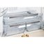 Внутреннее пространство продумано до мелочей. Три стеклянные полки в холодильной камере и две в морозильной позволяют разместить продукты максимально удобно и экономично. Восемь полок на дверце и подставка для яиц предлагают дополнительное пространство для хранения. Особенностью является наличие зоны свежести с тремя полками/контейнерами, где можно хранить продукты, требующие специальных условий.