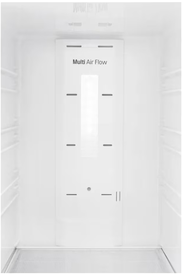 Специальная зона свежести предназначена для правильного и более длительного хранения овощей, фруктов, зелени. В ней поддерживается околонулевая температура, поэтому продукты не перемораживаются и не пересыхают. Система охлаждения этого холодильника — многопоточное охлаждение Multi-flow.