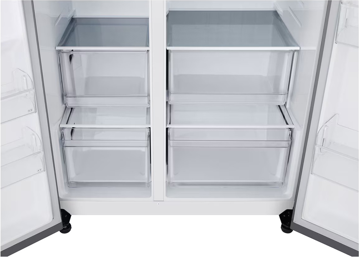 Данная модель — отдельностоящая, поэтому нужно тщательно подобрать место для ее размещения. Холодильник Side-by-Side с необычным расположением камер — сбоку друг от друга — позволяет увеличить объем продуктов для хранения. Такой вариант подходит обладателям просторной кухни, большим семьям, людям, которые запасают продукты и готовят впрок. Количество камер: 2.