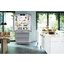 Модель шириной 91 см и высотой 204 см отличается очень большим объемом 585 литров — такое устройство подойдет для просторной кухни. Этот холодильник в стальном корпусе был удостоен престижной награды reddot design award за лучший дизайн. Наружные стенки цвета нержавеющей стали имеют специальное покрытие для защиты от отпечатков пальцев. За дверцей располагается панель управления с дисплеем MagicEye с цифровой индикацией температуры. В холодильной камере используется автоматическая система оттаивания, так что ее не нужно длительно размораживать, а свежесть продуктов сохраняется дольше. Автоматический режим SuperCool в холодильной камере на протяжении 12 часов поддерживает низкую температуру +2 °С: это особенно удобно при загрузке большой партии свежих продуктов. Стеклянные полки Premium GlassLine регулируются по высоте. Производительность замораживания в морозильном отделении составляет 11 кг в сутки. Два морозильных ящика легко выдвигаются на телескопических шинах. Ледогенератор IceMaker с фильтром работает в автоматическом режиме и подключен к водопроводу. В холодильной камере предусмотрено щадящее освещение с помощью светодиодных колонн.