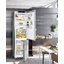 Встраиваемые холодильники монтируются в нишу или колонну. Передняя их часть закрывается декоративным мебельным фасадом и снаружи не отличается от дверцы обычного кухонного шкафа, так что их не нужно подбирать под интерьер помещения. Объем этих холодильников, как правило, несколько меньше, чем у отдельностоящих, так как при встраивании необходимо оставлять свободное пространство для вентиляции. Они отличаются меньшим уровнем шума, а также лучше держат холод и отличаются большей экономичностью из-за дополнительного слоя изоляции. Ассортимент этих холодильников не так велик, как у отдельно стоящих, установка более трудоемкая, а стоимость обычно несколько выше.