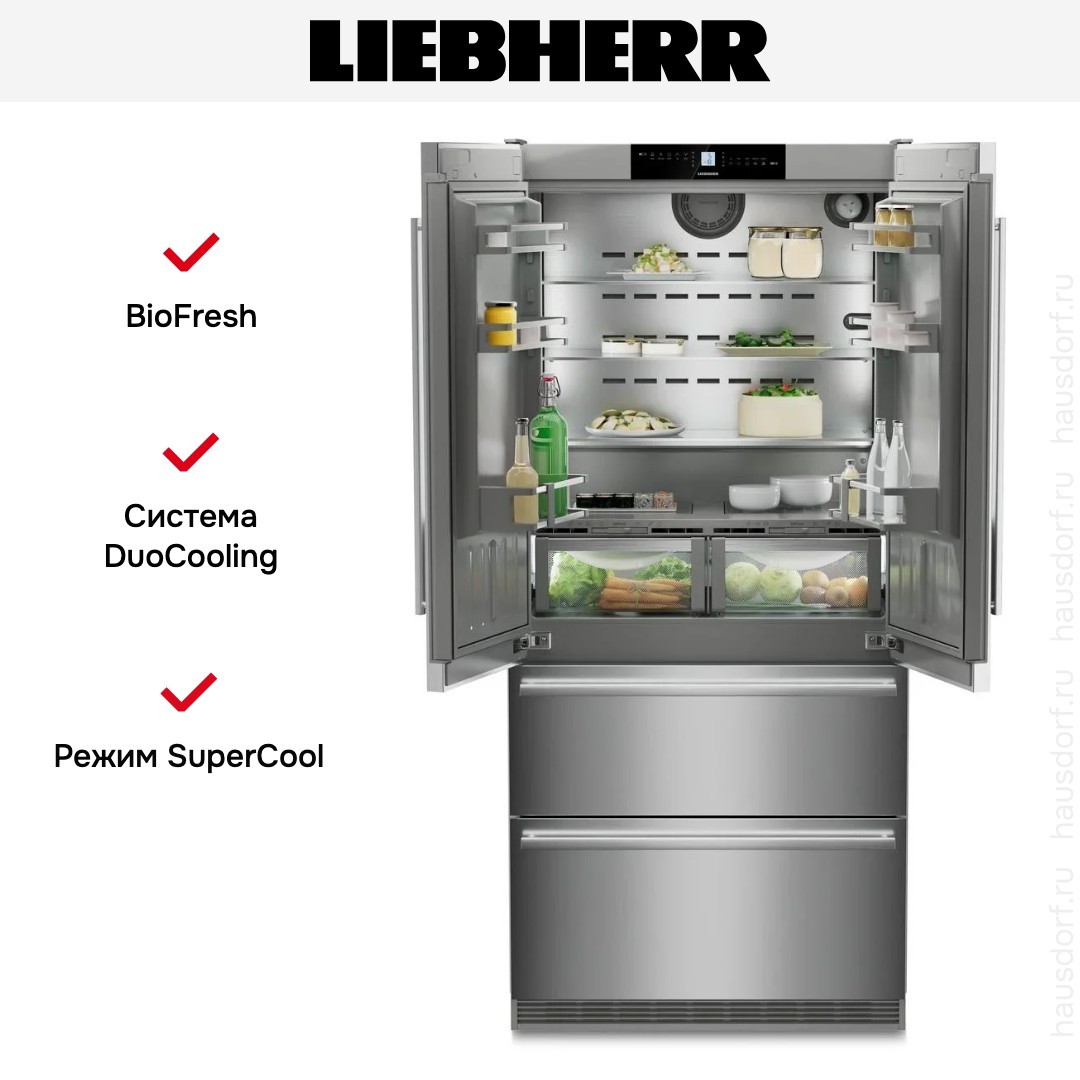 Особенности дизайна также помогут вам остановить свой выбор на этой модели Либхер. Цвет корпуса: нержавеющая сталь. Благодаря электронной системе управления легко регулировать и контролировать температуру.