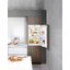 Модель высотой 87 см в стальном корпусе с дверным упором справа встраивается в нишу или шкаф. Отличается жестким креплением мебельного фасада door on door, так что дверца может открываться ни большой угол до 115°. Класс энергоэффективности A++ означает, что устройство потребляет минимальное количество электроэнергии. Климатический класс SN-T гарантирует, что холодильник способен работать при наружных температурах от +10 до +43°C. Для регулировки параметров работы используется система MagicEye с ЖК-дисплеем, кнопками и цифровой индикацией температуры. В холодильном отделении расположены 4 полки из закаленного стекла, способного выдержать значительный вес, в том числе 3 регулируемые по высоте и одна складная полка. Полки на дверце выполнены в дизайне Comfort GlassLine. Автоматическое оттаивание облегчает очистку стенок, поскольку на них не намерзает лед. Автоматический режим SuperCool способствует быстрому снижению температуры, что особенно удобно при загрузке большого количества свежих продуктов. Уровень шума очень низок, он составляет всего 33 дБ. Для удобного встраивания применяются регулируемые по высоте ножки и мебельная вентиляция.