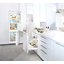 Полки из прозрачного или белого пластика могут иметь металлическую окантовку. Они могут без труда регулироваться по высоте для размещения банок разного размера. Для того чтобы банки, особенно стеклянные, не ударялись одна о другую, на подобных полках предусматриваются специальные ограничители из пластика, которые легко передвигаются вдоль направляющей.