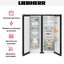 Либхер XRFbd-5220 Plus NoFrost — комбинированный холодильник типа Side-by-Side с морозильной камерой в левой части. По сути, он представляет собой два отдельных устройства, каждое из которых может использоваться самостоятельно. Холодильный агрегат выделяется увеличенной вместимостью: его общий объем достигает 732 литра, а объем морозильной камеры составляет 320 литров. Два мощных компрессора отличаются низким потреблением электроэнергии и работают практически бесшумно. Корпус изготовлен из черной нержавеющей стали BlackSteel с покрытием от отпечатков пальцев. Дверцы открываются вправо и влево на широкий угол до 115 градусов и имеют удобные утопленные ручки.