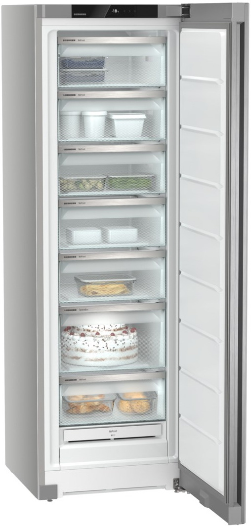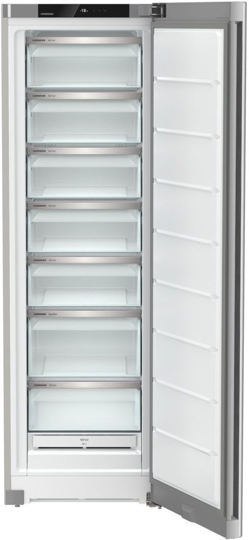 Морозильная камера высотой 185 см, которая может устанавливаться side-by-side с холодильником. Общий объем этой отдельно стоящей модели — 320 литров. В камере размещаются семь прозрачных контейнеров, имеется ящик увеличенного объема XXL Space box, поднос для замораживания и аккумуляторы холода. Ящики удобно выдвигаются на встроенных направляющих.