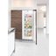 Большой морозильник высотой 140 см и объемом 186 литров может встраиваться бок о бок с холодильным шкафом. Жесткое крепление мебельного фасада прямо на дверцу по системе door-on-door придает конструкции особую прочность, а дверца при этом может открываться на угол до 115 градусов. Регулируемые ножки помогут установить холодильник строго вертикально. Доводчик с системой амортизации SoftSystem позволяет плавно прикрывать дверь. Электронная панель управления с сенсорными кнопками и ЖК-дисплеем MagicEye с цифровой индикацией температуры удобно располагается за дверцей в верхней части корпуса. Функции панели управления можно заблокировать от детей. Для лучшего обзора содержимого предусмотрено экономичное и яркое светодиодное освещение. Система охлаждения NoFrost полностью исключает ручное размораживание, так как на стенках камеры не образуется лед и иней. Обогрев боковой стенки гарантирует безопасность других кухонных приборов и техники при встраивании. Система Vario служит для извлечения полок и ящиков, если продукты в них не помещаются. Два аккумулятора холода позволяют 34 часа поддерживать низкую температуру при отключении электричества.