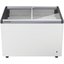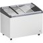 Ларь снабжен верхней откидной крышкой, позволяющей поддерживать во внутренней камере низкую температуру. Крышка может быть как глухой, изготовленной из металла, как и весь корпус, так и прозрачной стеклянной. Подобная конструкция требует достаточно много свободного места для установки, однако может быть размещена в подсобном помещении, а не на виду.