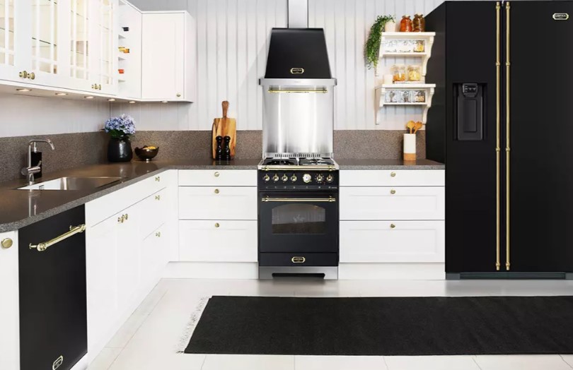 Последнее время достаточно широкое распространение получили холодильники черного цвета. Подобные устройства придают кухне особый стиль, однако не рекомендуется устанавливать их в небольшом помещении, особенно если фасад изготовлен не из стекла. Кроме того, черные холодильники требуют постоянного тщательного ухода, так как на них лучше заметны загрязнения.