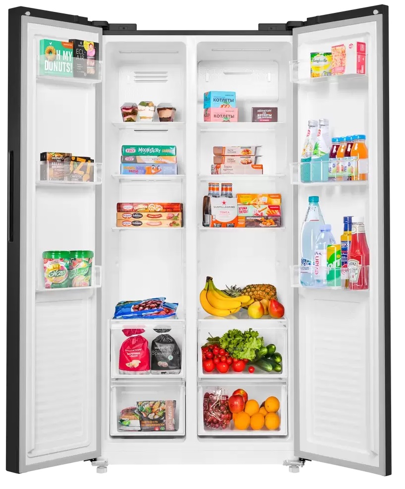 К холодильникам с нестандартным открыванием двери относятся прежде всего большие устройства Side-by-Side. У холодильной камеры, расположенной справа, дверь открывается в правую сторону, у камеры, расположенной слева, то есть морозильника, предусмотрено левое открывание дверцы.