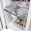 В холодильной камере внутреннее наполнение составляют 6 полок из закаленного стекла, 8 полок на дверце, 2 контейнера для фруктов и овощей и зона свежести с регулировкой влажности. В морозильном отделении для хранения продуктов предусмотрены три стеклянные полки и два выдвижных ящика. Производительность замораживания достигает 10 кг продуктов в сутки.