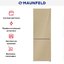 Maunfeld MFF185NFBG — отдельно стоящий двухкамерный холодильник с морозильником снизу из дизайн-коллекции Модерн. Корпус бежевого цвета изготовлен из металла, а фасад его — из прочного и эффектного закаленного стекла. Для охлаждения используется мощный инверторный компрессор с пониженным энергопотреблением класса А+ и уровнем шума всего 42 дБ. Холодильник подойдет для установки в кухне любой площади благодаря стандартной ширине 60 см, высоте 185,5 см и глубине 64 см. Общий объем его составляет 340 литров, из них 94 литра приходится на морозильную камеру с производительностью замораживания до 4,5 кг продуктов в сутки. Холодильник оснащен системой размораживания NoFrost, так что на стенках у него не образуется иней, и очистка их занимает минимум времени. Перенавешиваемая дверца и регулируемые ножки позволяют найти оптимальное место для размещения прибора.
