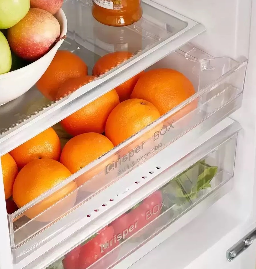 Ящики для овощей и фруктов можно найти в любой холодильной камере, какого размера ни был бы ваш холодильник — от большого устройства Side-by-Side до стандартной двухкамерной модели. В простейшем варианте они представляют собой обычные выдвижные ящики из пластика в нижней части камеры.