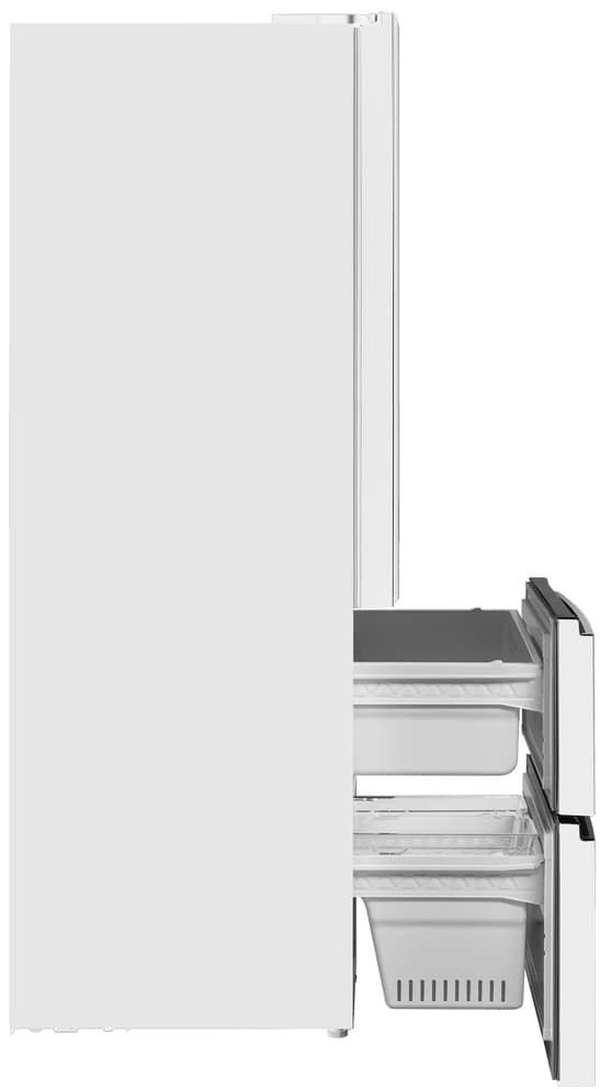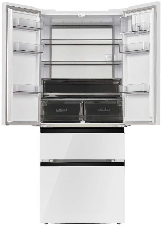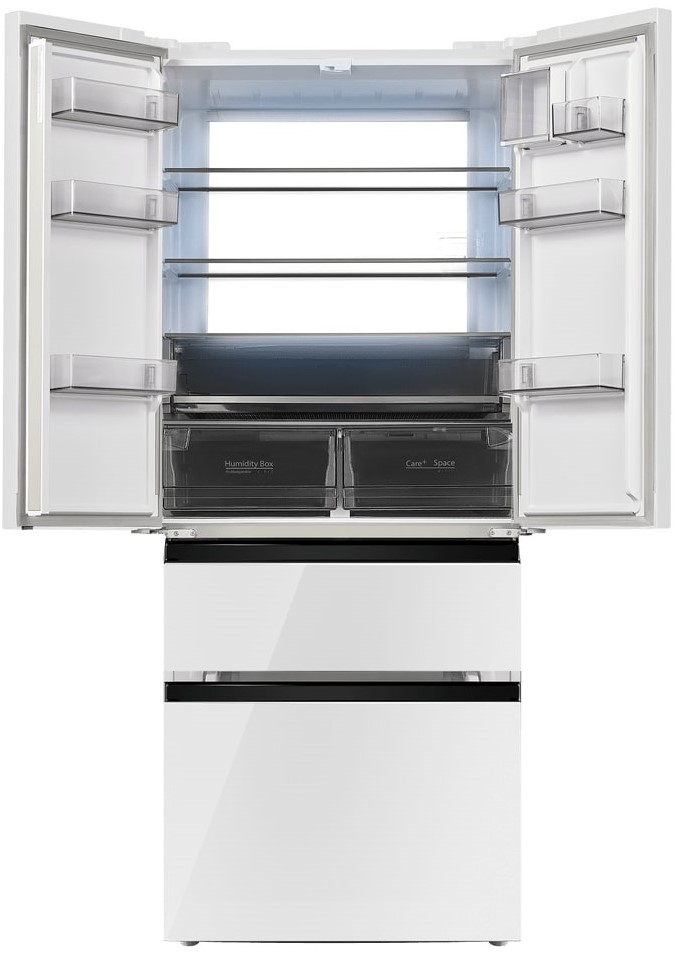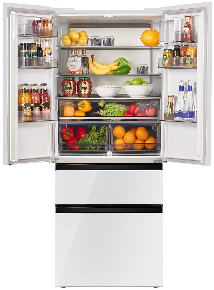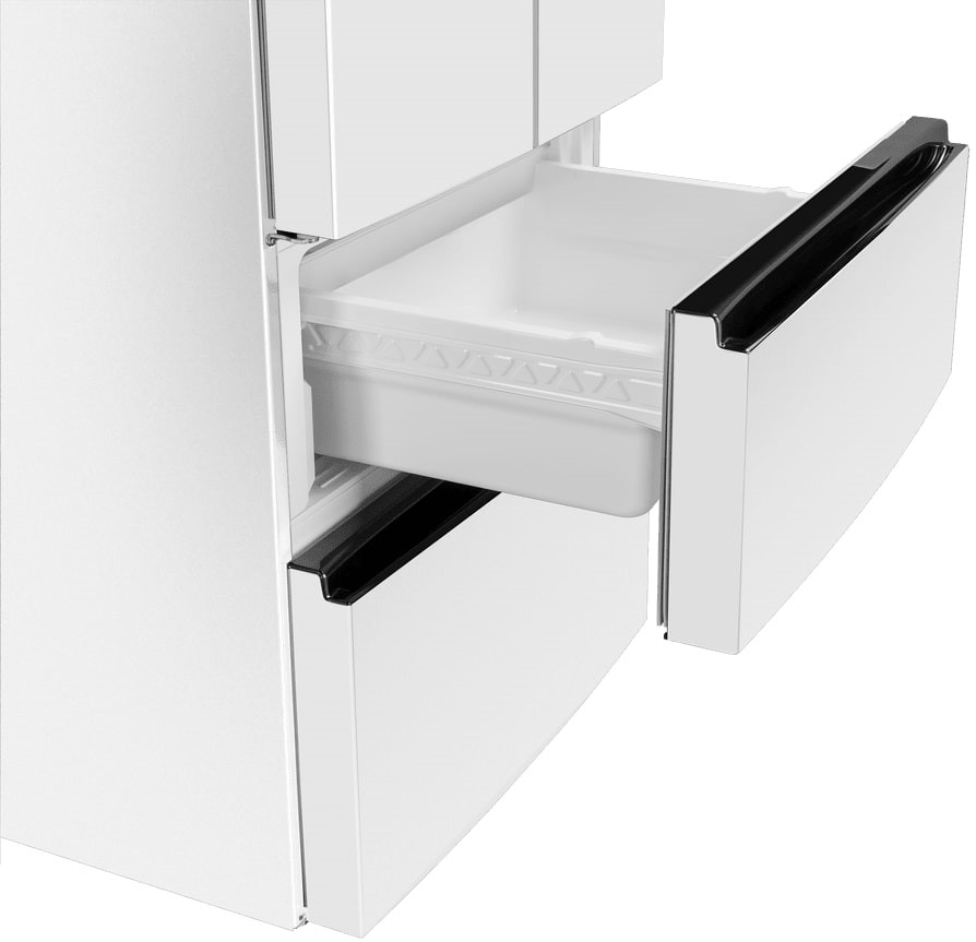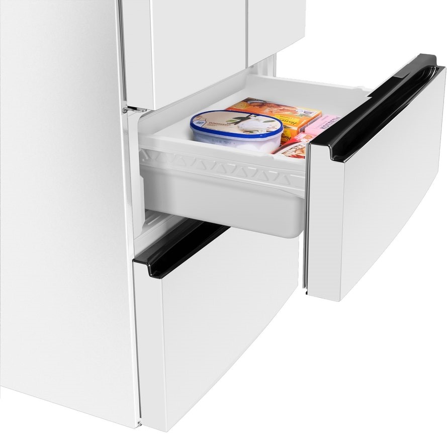 Холодильники с так называемой французской дверью или French Door также имеют распашные двери, но за ними находится не две, а одна камера. Эти двери занимают не всю высоту холодильника, а только ее часть. В нижней части подобных холодильников могут находиться либо еще две распашные двери, либо выдвижные морозильные ящики.