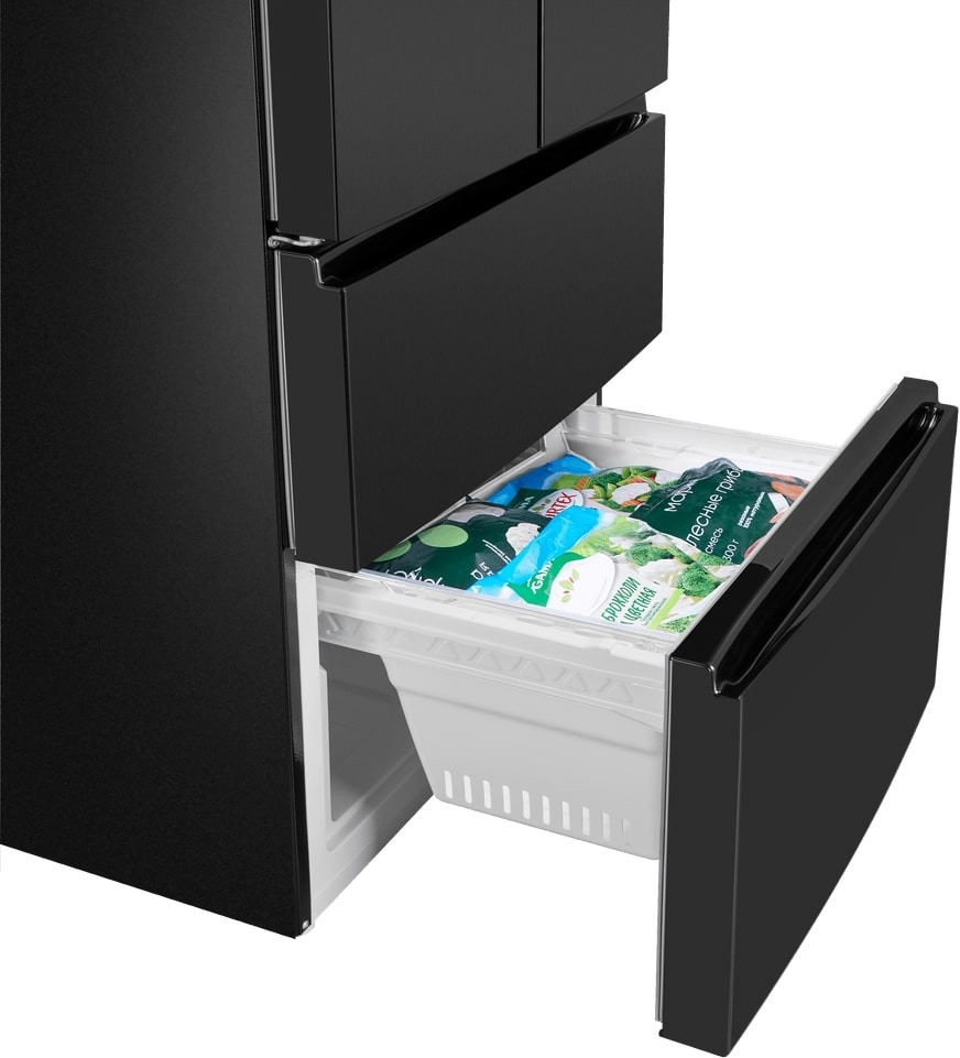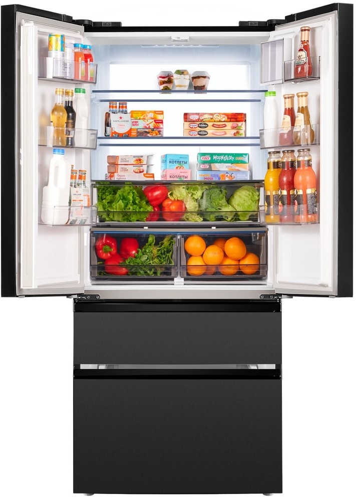 Трехкамерные модели выпускаются в нескольких вариантах. В некоторых случаях в качестве третьей камеры поступает так называемая зона свежести — отделение, где поддерживается температура около 0 градусов. В другом варианте подобные модели имеют морозильную камеру, состоящую из двух выдвижных ящиков.