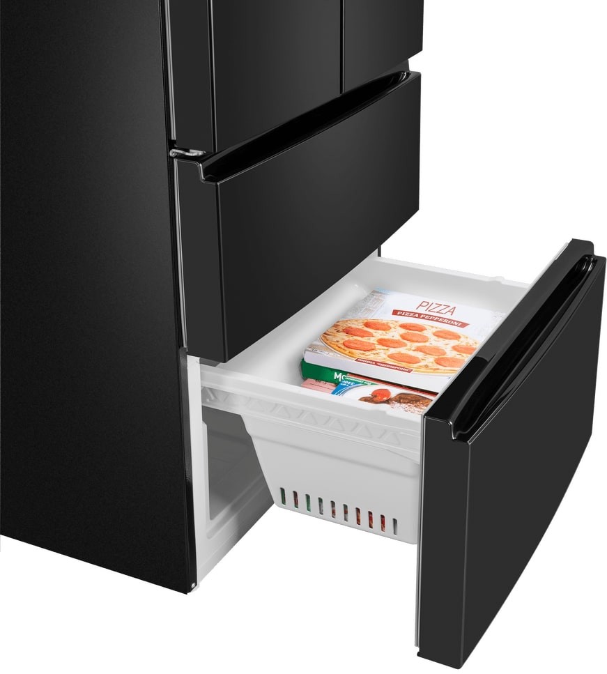 Холодильники с так называемой французской дверью или French Door также имеют распашные двери, но за ними находится не две, а одна камера. Эти двери занимают не всю высоту холодильника, а только ее часть. В нижней части подобных холодильников могут находиться либо еще две распашные двери, либо выдвижные морозильные ящики.
