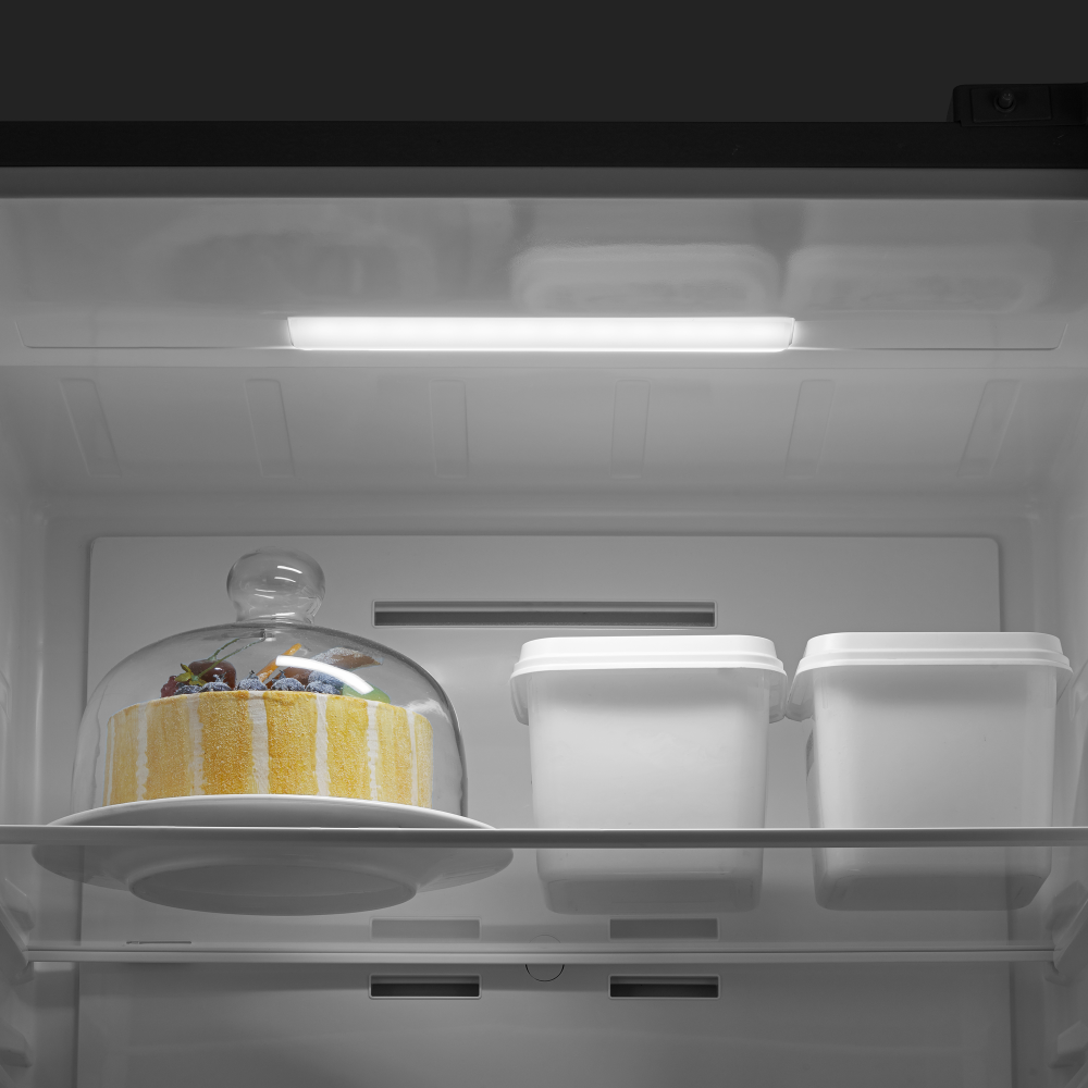 Внутреннее освещение холодильной камеры позволяет обеспечить хороший обзор содержимого и быстро найти необходимые продукты. Чем меньше времени будет открыта дверца холодильника, тем лучше будет поддерживаться в камере выбранная температура, следовательно, улучшится и качество хранения продуктов.