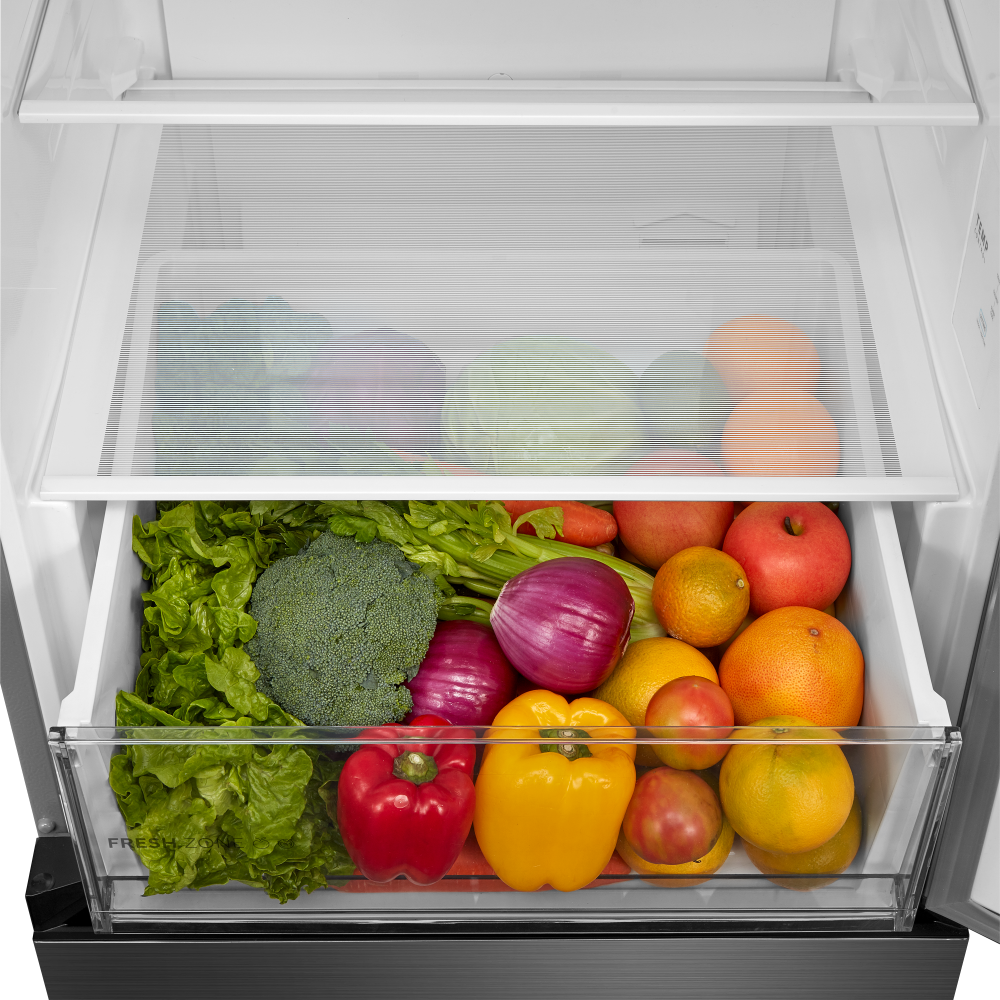 Специальная зона свежести предназначена для правильного и более длительного хранения овощей, фруктов, зелени. В ней поддерживается околонулевая температура, поэтому продукты не перемораживаются и не пересыхают. Система охлаждения этого холодильника — циркуляционная .