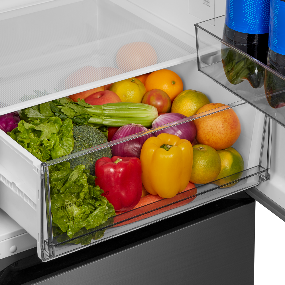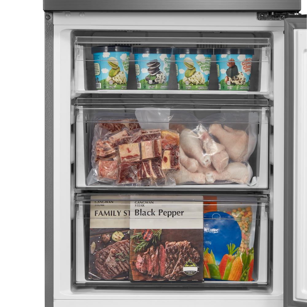 Трехкамерные модели выпускаются в нескольких вариантах. В некоторых случаях в качестве третьей камеры поступает так называемая зона свежести — отделение, где поддерживается температура около 0 градусов. В другом варианте подобные модели имеют морозильную камеру, состоящую из двух выдвижных ящиков.
