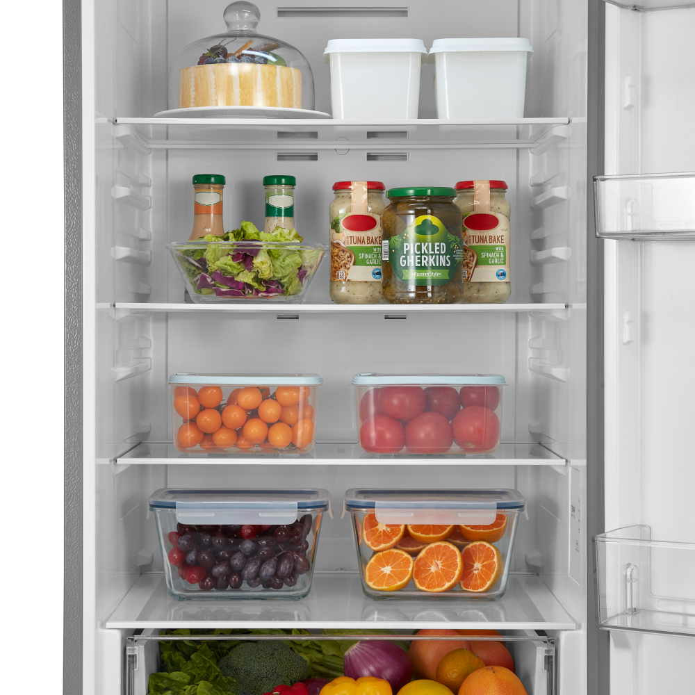 Полки в холодильнике позволяют рационально организовать хранение продуктов, обеспечить легкий поиск и доступ к ним. Основные материалы для изготовления полок — это пластик, стекло и металл. Часть полок можно переставлять по высоте или складывать вдвое или втрое.